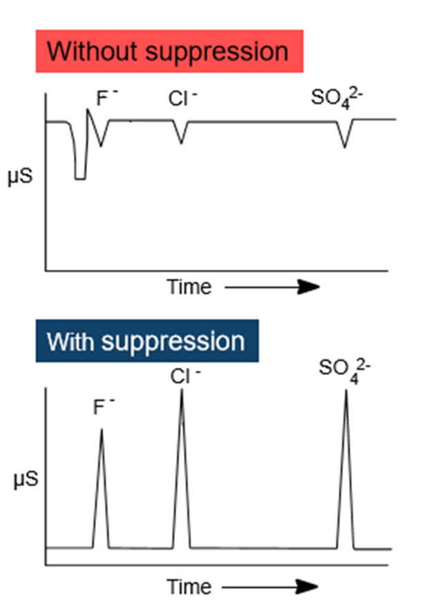 Dalam Ion Kromatografi (IC), ion-ion dalam sampel dipisahkan berdasarkan interaksi mereka dengan resin penukar ion yang ada di dalam kolom. Untuk mendeteksi ion-ion ini, terutama dengan detektor konduktivitas, perlu dilakukan pengurangan gangguan dari eluen (pelarut) yang juga bersifat konduktif. Di sinilah peran suppressor menjadi sangat penting.